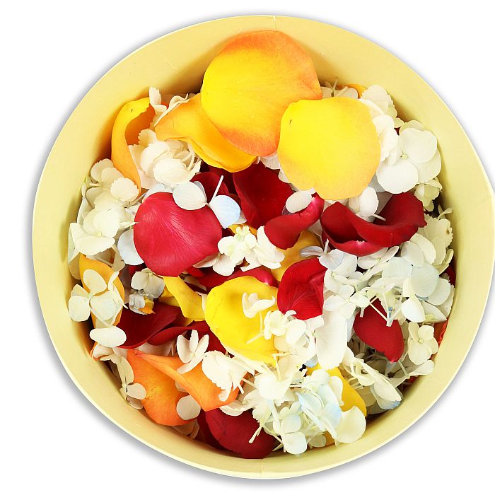 Illuminate any space with the splendid radiance of our exceptional flower arrangement. This radiant bouquet features a vibrant combination of Hydrangea, Rose, and Chrysanthemum petals, meticulously arranged to create a stunning and lively display.